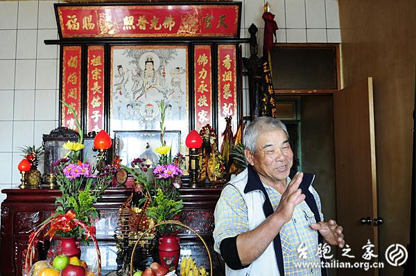 200多年前鄭士育先祖從大陸渡海來臺(tái)時(shí)帶來鄭成功神像,一直供奉在自己家中。徐波/攝影