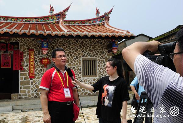 來自臺中市清水區(qū)楊厝里的張昭友宗親接受長泰縣電視臺采訪。徐波/攝影
