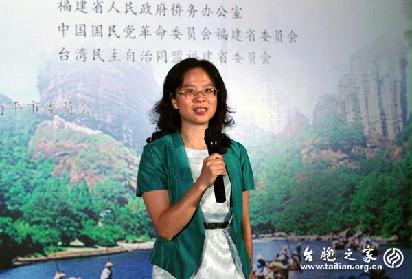 全國(guó)臺(tái)聯(lián)副會(huì)長(zhǎng)、福建省臺(tái)聯(lián)會(huì)長(zhǎng)、省臺(tái)盟副主委江爾雄女士代表主辦方致辭 鄭嵐/攝影