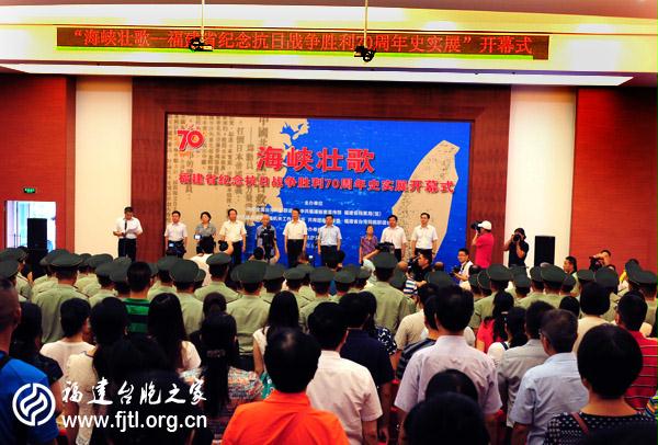 福建省紀(jì)念抗日戰(zhàn)爭勝利70周年史實(shí)展開幕式莊嚴(yán)的國歌聲中拉開序幕 鄭嵐/攝影