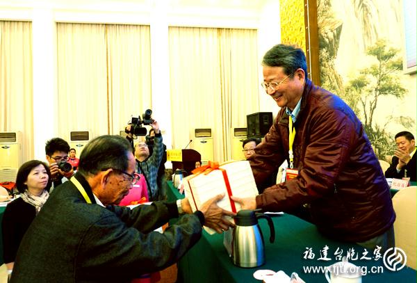 全國(guó)臺(tái)聯(lián)會(huì)長(zhǎng)汪毅夫出席開(kāi)幕式,并為邵魁式先生和臺(tái)灣戲曲學(xué)院頒授贈(zèng)書(shū)。徐波/攝影