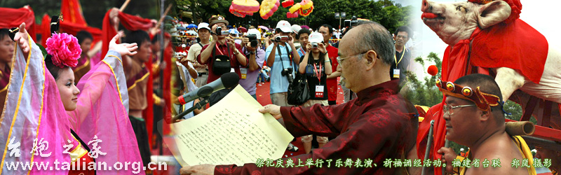 中國國民黨榮譽主席連戰(zhàn)為此次盛會發(fā)來賀信,國民黨主席吳伯雄題寫賀詞,臺灣海峽交流基金會也發(fā)來賀電。臺灣二十三個道教協(xié)會和三百多家宮廟共五百四十多名代表組成的道教參訪團赴會,據(jù)稱這是近六十年來臺灣道教訪問大陸人數(shù)最多的一個參訪團。