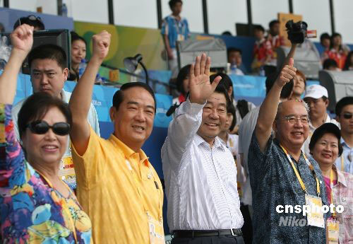 賈慶林、吳伯雄、宋楚瑜到場(chǎng)為中華臺(tái)北棒球隊(duì)加油。中新社 武仲林 攝