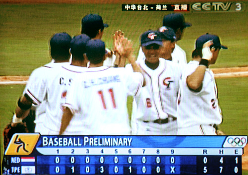 臺(tái)胞之家網(wǎng)8月13日快訊: 在北京五棵松棒球場(chǎng)剛剛結(jié)束的一場(chǎng)北京奧運(yùn)男子棒球揭幕戰(zhàn)(預(yù)賽)中,來(lái)自寶島的中華臺(tái)北隊(duì)以5:0 大勝荷蘭隊(duì),取得開(kāi)門(mén)紅。