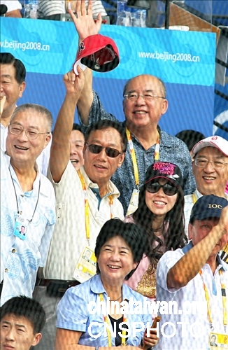 《吳伯雄、郭臺(tái)銘同場(chǎng)做觀眾》2008年8月13日,中華臺(tái)北奧運(yùn)棒球隊(duì)首戰(zhàn)荷蘭,以5:0完勝。國(guó)民黨主席吳伯雄、鴻海集團(tuán)總裁郭臺(tái)銘帶著新婚妻子曾馨瑩前往觀戰(zhàn)加油。作者: chinatime |