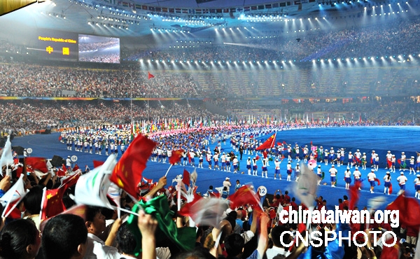 《殘奧會(huì)開(kāi)幕 中國(guó)團(tuán)入場(chǎng) 九萬(wàn)觀眾起立歡呼 加油聲響徹全場(chǎng) 》(優(yōu)秀獎(jiǎng)) 在9月6日北京殘奧會(huì)開(kāi)幕式上,當(dāng)代表團(tuán)旗手、“獨(dú)臂泳王”王曉福高擎國(guó)旗,引領(lǐng)中國(guó)代表團(tuán)入場(chǎng)的時(shí)候,“鳥(niǎo)巢”全場(chǎng)九萬(wàn)人起立歡迎中國(guó)代表團(tuán)入場(chǎng),“中國(guó)加油”的聲音響徹全場(chǎng)。 作者: lyxubo |