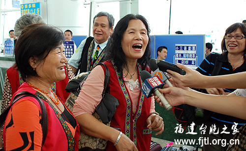 一踏上祖國(guó)大地,臺(tái)胞們忙用手中的DV拍個(gè)不停,臺(tái)胞們被接待他們的福建省臺(tái)聯(lián)朋友的熱情所感動(dòng),激動(dòng)地唱起地道的臺(tái)灣原住民歌曲“老人歡樂飲酒歌”以表感謝之情。臺(tái)灣代表團(tuán)豐月蓮說,我們是抱著兩岸同心,都是中國(guó)人而來的,大家很開心,很期待這次活動(dòng)。
