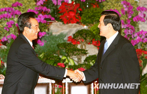 11月6日,馬英九在臺北賓館會見海協(xié)會會長陳云林。新華社記者 邢廣利 攝 11月6日,馬英九在臺北賓館會見海協(xié)會會長陳云林一行。新華社記者 邢廣利 攝