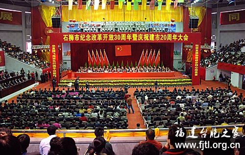 福建臺胞之家網(wǎng)(圖/文 鄭 嵐)十一月二十三日上午,石獅市紀(jì)念改革開放三十周年暨慶祝建市二十周年慶典大會(huì)在市體育館舉行,中共中央政治局常委、全國政協(xié)主席賈慶林專門發(fā)來賀電,祝賀石獅建市二十周年所取得的巨大成就。