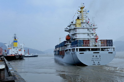 12月15日,直航臺北港的“金海緣號”貨輪徐徐離開福州馬尾港。