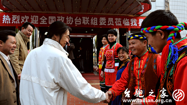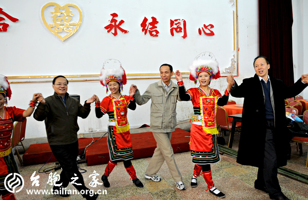 隨后,全國(guó)政協(xié)臺(tái)聯(lián)組一行在華安縣領(lǐng)導(dǎo)柯志宏、李亞月、方龍輝陪同下,觀看了華安縣高山族演出隊(duì)表演的精彩節(jié)目,并興致勃勃與高山族同胞一起跳起《拉手舞》。(福建漳州華安 鄒銀河 鄒艷萍)