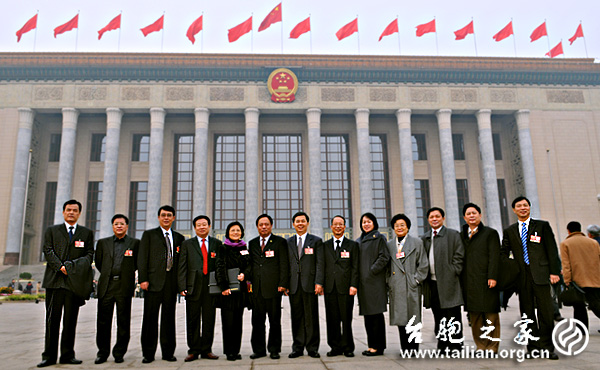 全國(guó)人大臺(tái)灣團(tuán)的13名代表出席了預(yù)備會(huì)議,并在人民大會(huì)堂前拍下了“全家福”。(圖文:徐波)