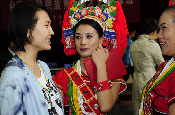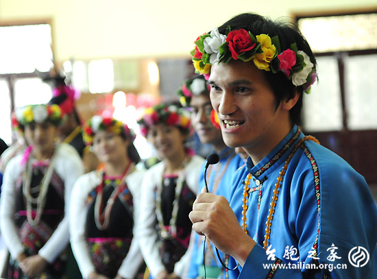 臺(tái)灣原住民族才藝進(jìn)修班結(jié)業(yè)式在北京中央民族大學(xué)舉行。圖為學(xué)員們?cè)趨R報(bào)演出中展示自己的才藝。 徐波 攝