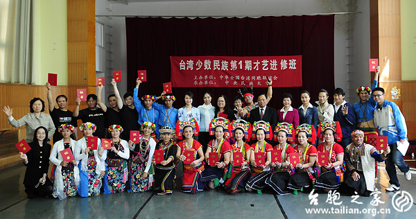 臺(tái)胞之家網(wǎng)4月25日訊:今天上午,臺(tái)灣原住民族第1期才藝進(jìn)修班匯報(bào)演出暨結(jié)業(yè)儀式在中央民族大學(xué)舞蹈學(xué)院禮堂舉行。全國(guó)人大常委、全國(guó)臺(tái)聯(lián)會(huì)長(zhǎng)梁國(guó)揚(yáng),全國(guó)政協(xié)常委、全國(guó)臺(tái)聯(lián)副會(huì)長(zhǎng)陳杰,全國(guó)臺(tái)聯(lián)辦公室副主任邵麗娟、中央民族大學(xué)舞蹈學(xué)院院長(zhǎng)蘇自紅以及全體指導(dǎo)老師出席了儀式。儀式由中央民族大學(xué)港澳臺(tái)辦公室副主任關(guān)燕于主持。