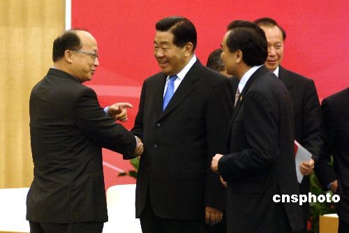5月16日下午,中共中央政治局常委、全國政協(xié)主席賈慶林在廈門會見臺中市市長胡志強(qiáng),并與之親切交流。當(dāng)日,賈慶林在廈門會見前來參加首屆海峽論壇的臺灣嘉賓代表。 中新社發(fā) 王東明 攝