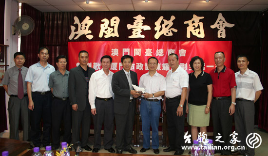臺(tái)胞之家網(wǎng)訊:5月31日至6月6日,為了加強(qiáng)與港澳臺(tái)灣社團(tuán)聯(lián)系,同時(shí)進(jìn)一步擴(kuò)大“九·八”投洽會(huì)的影響力,邀請(qǐng)廣大港澳客商參加廈門(mén)市6月份在港舉行的推介會(huì)等系列活動(dòng),全國(guó)臺(tái)聯(lián)副會(huì)長(zhǎng)、福建省臺(tái)聯(lián)會(huì)長(zhǎng)、廈門(mén)市政協(xié)副主席陳耀中率團(tuán)赴港澳拜會(huì)臺(tái)灣社團(tuán),隨行的有廈門(mén)市臺(tái)聯(lián)會(huì)長(zhǎng)盧紹荀、廈門(mén)市臺(tái)辦副主任王明水等同志。