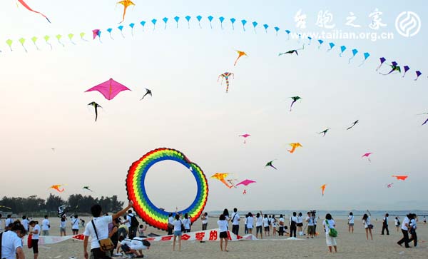 開營儀式結(jié)束后,臺胞青年到廈門海邊,舉行了“放飛祝福,放飛希望”放風(fēng)箏活動,把海峽西岸2009臺胞青年夏令營開營式推向高潮。