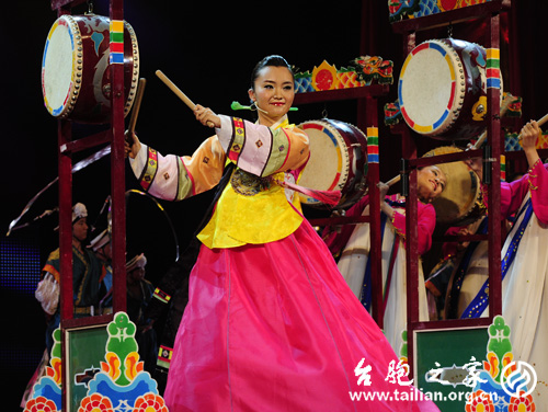 開營式結(jié)束后,中央民族歌舞團(tuán)用一臺熱情奔放的歌舞節(jié)目,再次表達(dá)了北京主人熱誠歡迎貴客的喜悅心情。來自寶島的兩位營員還登臺與專業(yè)演員互動,共同演唱流行歌曲《隱形的翅膀》,博得全場喝采!