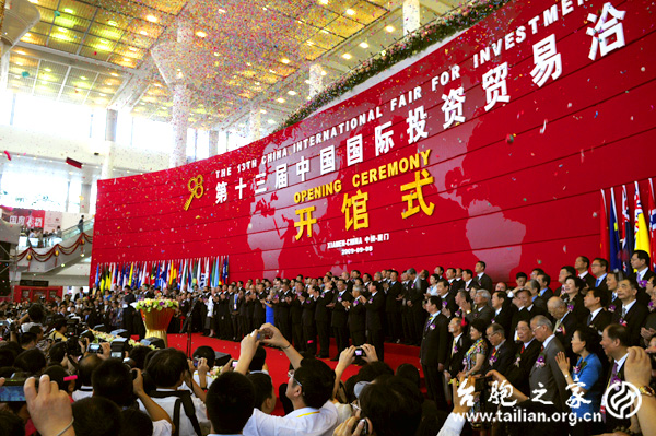 臺(tái)胞之家網(wǎng)快訊:9月8日9點(diǎn)08分,國(guó)務(wù)委員、國(guó)務(wù)院秘書(shū)長(zhǎng)馬凱開(kāi)啟金鑰匙,第十三屆中國(guó)國(guó)際投資貿(mào)易洽淡會(huì)在廈門(mén)盛大開(kāi)幕。原國(guó)務(wù)院副總理吳儀,全國(guó)政協(xié)副主席、民革中央常務(wù)副主席厲無(wú)畏,全國(guó)人大常委、全國(guó)臺(tái)聯(lián)會(huì)長(zhǎng)梁國(guó)揚(yáng),福建省與廈門(mén)市主要領(lǐng)導(dǎo)及來(lái)自全球100多個(gè)國(guó)家和地區(qū)的工商界人士、政府官員和有關(guān)國(guó)際組織的代表出席開(kāi)館儀式。