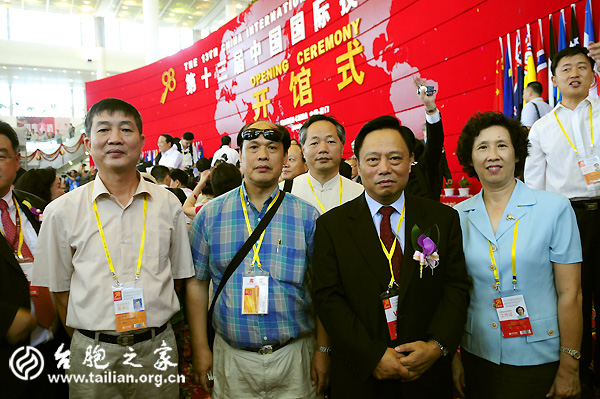 梁國(guó)揚(yáng)會(huì)長(zhǎng)與臺(tái)灣鄉(xiāng)親在投洽會(huì)上。 徐波 攝影