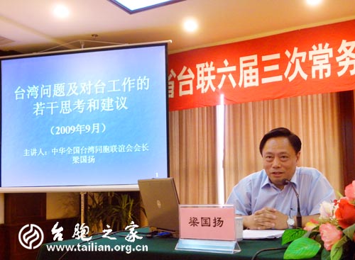 全國臺聯(lián)梁國揚會長為福建省臺聯(lián)六屆三次理事會授課