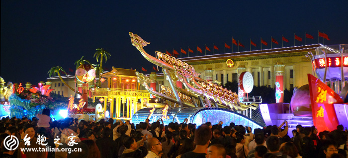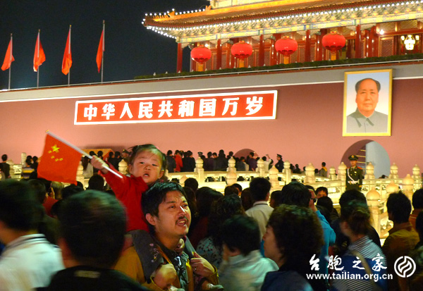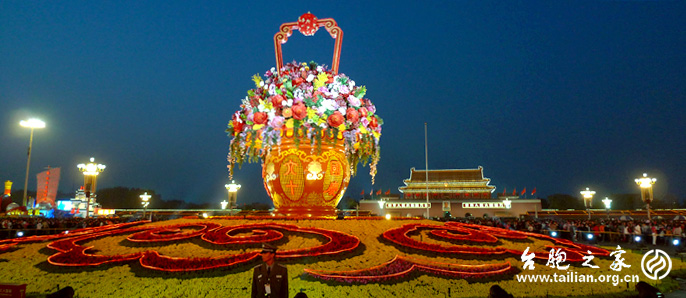 臺(tái)胞之家網(wǎng)10月7日訊:節(jié)日的天安門廣場(chǎng)花團(tuán)錦簇,游人如織,一派祥和之象。60輛游行彩車,直徑40米、高14.9米的“普天同慶”巨型花籃花壇吸引著全國各地的游客前來欣賞花車、拍攝美景,重溫國慶慶祝活動(dòng)的歡樂和激情。廣場(chǎng)中央,矗立著“革命的先行者”孫中山先生的巨幅畫像,許多游人到此駐足與歷史偉人畫像合影。夜幕降臨,廣場(chǎng)上的華燈與流光溢彩的彩車交相輝映,勾畫出了絢麗多彩、美不勝收的北京之夜。(徐波)