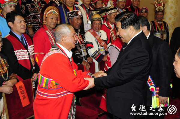 臺胞之家網(wǎng)訊:中共中央政治局常委、全國政協(xié)主席賈慶林12月21日日在人民大會堂會見了臺灣少數(shù)民族代表人士訪問團一行。