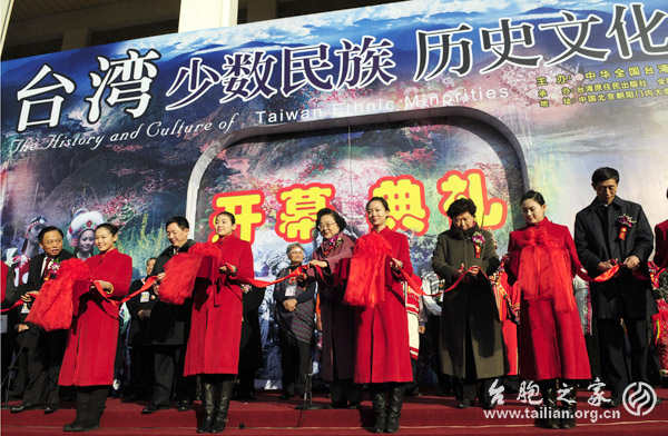 臺胞之家網(wǎng)12月21日訊: 由中華全國臺灣同胞聯(lián)誼會主辦的“臺灣少數(shù)民族歷史文化展”,今天上午在北京民族文化宮展覽館隆重開幕。全國政協(xié)副主席、臺盟中央主席林文出席開幕式并宣布開幕,全國人大常委、全國臺聯(lián)會長梁國揚致開幕辭。中央統(tǒng)戰(zhàn)部副部長尤蘭田、國臺辦副主任葉克冬、中直工委副書記楊金勇等領(lǐng)導(dǎo)出席開幕式并為開幕式剪彩。