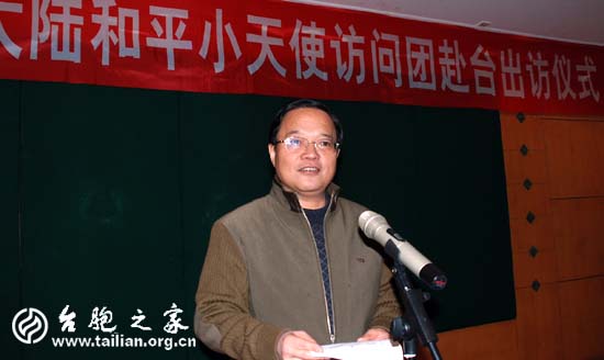 臺胞之家網(wǎng)元月28日訊:(圖/文 陽夏)由全國臺聯(lián)、全國少工委與臺灣企劃人協(xié)會聯(lián)合主辦,福建省臺聯(lián)、省少工委承辦,福州市臺聯(lián)、市少工委協(xié)辦承辦的第十二屆祖國大陸和平小天使赴臺交流訪問團今天啟程。下午,在福州市青少年活動中心舉行隆重的啟程儀式。全國少工委、全國臺聯(lián)文宣部、省少工委及省臺聯(lián)領(lǐng)導(dǎo)出席今天的啟程儀式。