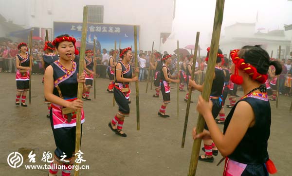 畬族少女表演杵舞迎佳賓 鄭嵐/攝影