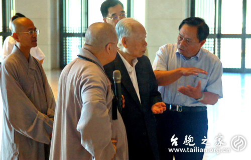 全國臺(tái)聯(lián)會(huì)長(zhǎng)梁國揚(yáng)(右一)陪同張克輝(右二)在臺(tái)灣佛教圣地法鼓山參觀。陳甪/攝影
