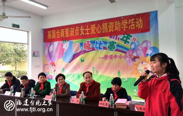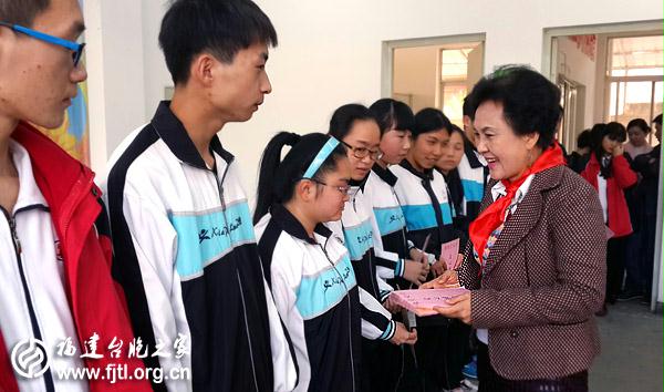 在愛心捐資助學活動現(xiàn)場,董淑貞女士為62名困難中小學生發(fā)放了共計4萬元的助學款。董女士說“慈善有助于社會和諧,我個人能力有限,但我愿意盡我能力在耳聽得到的、手摸得到的、眼睛看得見的、腳能站得到的范圍內(nèi)給別人提供幫助”,她用自己的成長經(jīng)歷,勉勵孩子們好好學習,珍惜學習時光,克服困難,爭取早日成材,并在現(xiàn)場與同學們互動,為同學們答疑解惑、出謀劃策。捐資助學儀式由霞浦縣副縣長游正劼主持,省臺聯(lián)文宣中心主任辦公室副主任鄭嵐、崇儒畬族鄉(xiāng)鄉(xiāng)長鐘曉惠出席助學儀式并作了發(fā)言,困難學生代表也上臺發(fā)言表達了對“董媽媽”的感激之情并表示會謹記“董媽媽”的教誨做個對社會有用的人。