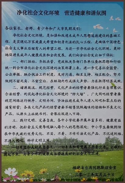 福建省臺(tái)聯(lián)發(fā)出“凈化社會(huì)文化環(huán)境 營(yíng)造健康和諧氛圍”倡議書(shū)
