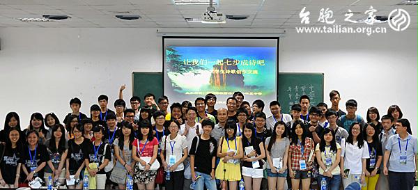 臺胞之家網(wǎng)福建臺聯(lián)訊:7月8日,來自海峽兩岸的中國人民大學(xué)、臺中科技大學(xué)、國立臺中教育及武夷學(xué)院等高校的120名大學(xué)生在武夷山職業(yè)學(xué)院,參加《教您七步成詩》的創(chuàng)作體驗活動,體驗中華五千年文化――格律詩詞的魅力。本次活動以南平市臺聯(lián)副會長、臺籍作者陳建平著的《教您七步成詩》作為紐帶,結(jié)合2013年海峽西岸臺胞夏令營,兩岸臺胞青年的所見所聞作為兩岸學(xué)生的創(chuàng)作源泉。