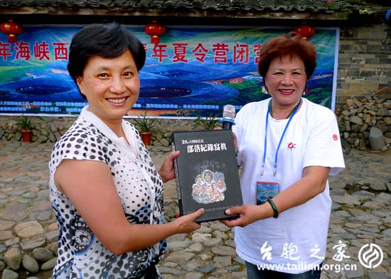 福建省致公黨、省民革、省政協(xié)臺港澳僑委、省臺聯(lián)、漳州市委統(tǒng)戰(zhàn)部、漳州市臺聯(lián)及南靖縣委統(tǒng)戰(zhàn)部、南靖縣臺聯(lián)的領(lǐng)導(dǎo)參加了閉營儀式。閉營儀式由福建省臺聯(lián)葉露昆副會長主持、福建省人大臺港澳僑委盧德昌及南靖縣委常委、統(tǒng)戰(zhàn)部鐘曉娟部長致辭,他們表示歡迎臺灣的學(xué)子到南靖來參觀,也希望以后兩岸的交流能更加密切。隨后,福建參訪團(tuán)的團(tuán)長及學(xué)員代表也作了發(fā)言,他們表示十分感謝全國臺聯(lián)組織了這么有意義的交流活動,也感謝省、市及地方臺聯(lián)的大力支持,使夏令營福建分營的臺胞青年能更為深入地了解了僅有一水之隔,語言、文化相同的廣大臺胞祖籍地之一的福建。