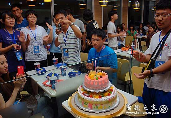 臺盟福建省委會的工作人員和營員們?yōu)闋I員過生日 攝影/鄭藝