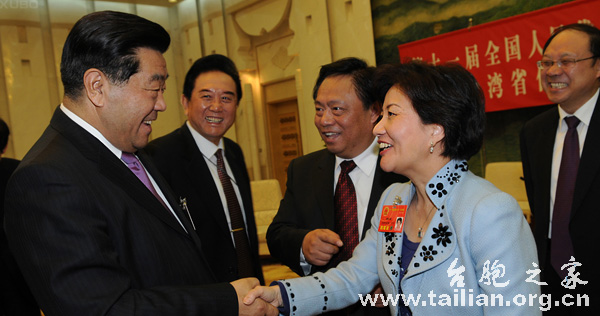 賈慶林主席參加臺灣代表團(tuán)審議時,與臺灣團(tuán)代表親切交談