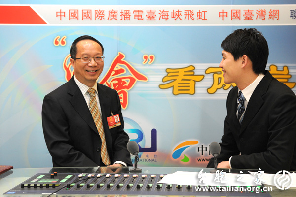 主持人:各位聽眾朋友,網(wǎng)友朋友們大家好,您現(xiàn)在收聽收看的是由中國國際廣播電臺海峽飛虹和中國臺灣網(wǎng)視聽中國頻道聯(lián)合推出的“兩會”特別節(jié)目“兩會看兩岸”系列訪談,我是中國臺灣網(wǎng)的主持人鄭紫豪。今天我們非常榮幸的請到了十一屆全國人大二次會議臺灣代表福建省臺聯(lián)會長陳耀中。陳先生您好。