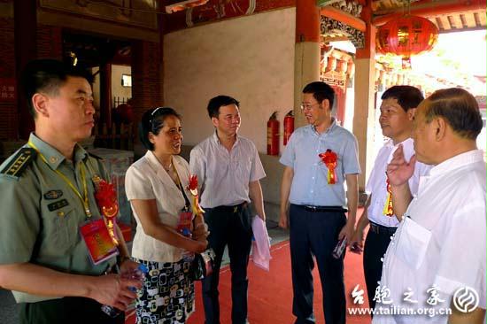 福建省臺聯(lián)柯連妹副會長(左2)與當?shù)卣I導探討文化傳承與保護 鄭嵐/攝影