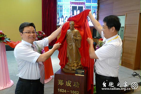 隨著臺(tái)灣臺(tái)南南美會(huì)理事長陳啟村和全國臺(tái)聯(lián)文宣部部長楊毅周的揭幕,一份特殊的禮物緩緩露出真容——一尊鄭成功像。這尊塑像,威風(fēng)凜凜,十分傳神,是陳理事長的心血杰作,也將永存北京臺(tái)灣會(huì)館。