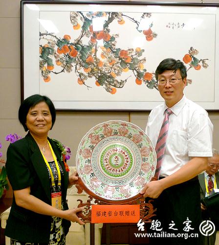 福建省臺(tái)聯(lián)向北京臺(tái)灣會(huì)館贈(zèng)送著名的“克拉克磁”工藝盤。鄭嵐/攝影