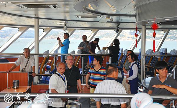 參訪團一行在平潭親密接觸跨越兩岸的“海峽號”客輪。鄭嵐/攝影