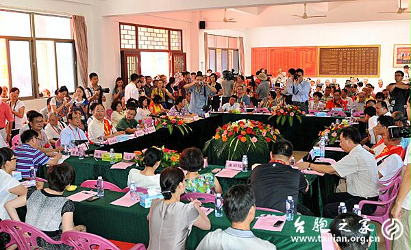 省臺聯(lián)會長江爾雄會長在懇親座談會致詞中指出:眾所周知,臺灣漢民族的祖先大多來自閩南地區(qū)。先民們篳路藍縷、胼手胝足,唐山過臺灣。在墾荒地形成了以同地域、同宗族、同宗姓相連結的血緣聚落或聚居村落。為了思念家鄉(xiāng),他們把祖籍地的府、縣、鄉(xiāng)、村地名、街巷名和宗祠名、寺廟名,乃至山川名勝名稱,甚至以開發(fā)建設臺灣有功的歷史人物、有影響的墾臺名人、移民首領名字、家族姓氏作為新聚居地的鄉(xiāng)鎮(zhèn)村里街區(qū)的地名,甚至作為祖祠、廟宇名稱。同時他們沿用相同的堂號;沿用傳世輩字序列;這些移民還把他們在大陸時信奉的各類神明奉入臺灣。隨著時間的推移,最終形成了海峽兩岸文化中特有的雙向的、互滲的鄉(xiāng)情延續(xù),表現(xiàn)出典型的鄉(xiāng)情文化的根源性、民族性和民間性特征,帶著自己特殊的價值和意義滲透到臺灣社會的各個角落。這些同名鄉(xiāng)鎮(zhèn)的存在,以無可爭議的事實再次驗證兩岸同根同源、血脈相連。自古以來,閩臺兩地的同宗族人對家族、血緣特別重視,通過諸如肇修族譜、編訂世序、建立宗祠等各種方式,向宗親族人傳輸宗法倫理觀念,以加強宗族向心力。