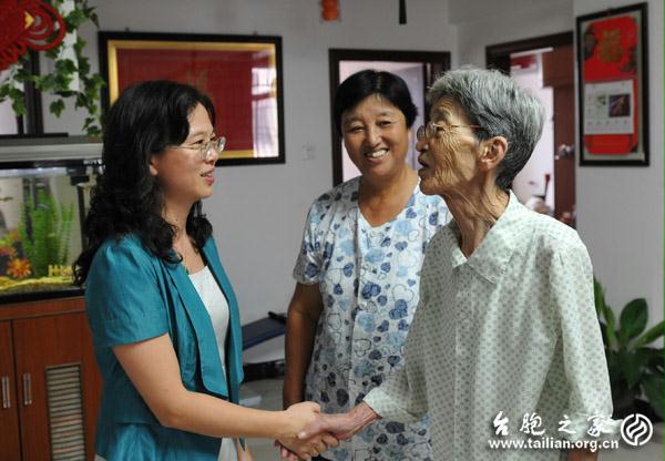 福建省臺聯(lián)江爾雄會長(左)看望老臺胞遺孀汪翠萍老人 鄭嵐/攝影