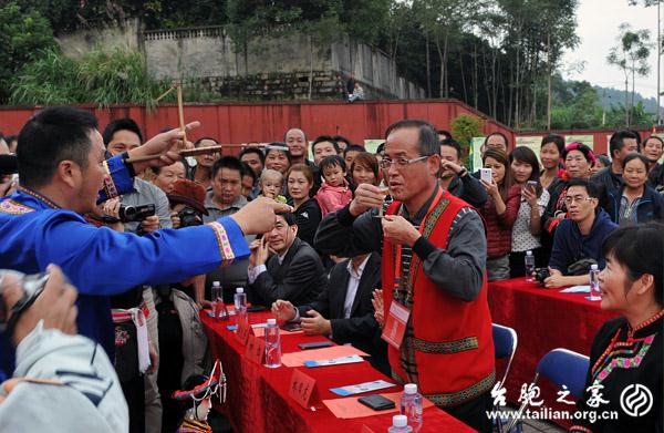 畬族同胞用傳統(tǒng)木偶表演向臺灣少數(shù)民族同胞敬酒 鄭嵐/攝影
