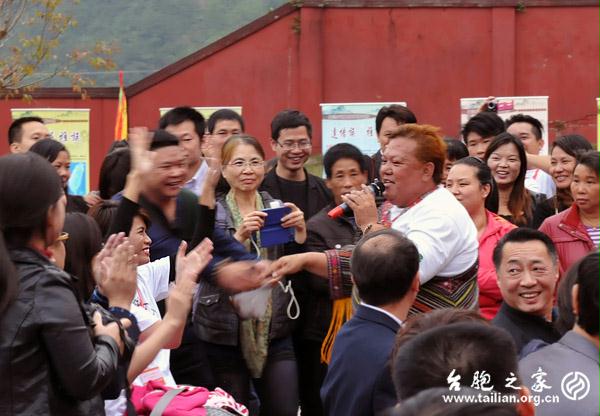 臺灣少數(shù)民族歌手走下舞臺與畬族同胞互動 鄭嵐/攝影