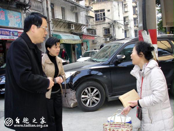 福州困難臺胞林美珠患有氣管炎、哮喘病、心臟病,為了治病,家里花去了大部分積蓄,不久前唯一的孩子又失蹤,生活困難。葉勁光會長鼓勵其樂觀面對生活,好好生活下去。林美珠很感激黨和政府為他做的一切,讓她在寒冷的冬天也能感受到溫暖。困難臺胞莊麗容的母親年老多病,住房破舊,孩子大學畢業(yè)還未找到工作,目前靠做些手工來維持生活,葉勁光關切地詢問其生活、收入及享受政策的有關情況, 鼓勵她一定要相信黨和政府,樹立信心,度過暫時的困難,生活一定會越過越好。在倉山金浦小區(qū), 葉勁光還看望了患有眼疾、高血壓、心臟病,依靠低保生活的困難孤寡臺胞陳麗英,鼓勵他保持樂觀的心態(tài),戰(zhàn)勝疾病。陳麗英激動得含著熱淚說,組織對她的關心勝過家人,表示積極治療和生活,對于陳麗英老人醫(yī)藥費問題,市臺聯(lián)林鴻榕副會長表示會積極協(xié)調(diào)解決。