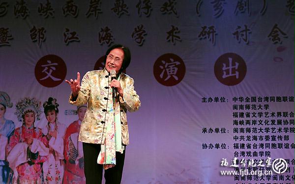 據(jù)悉,由中華全國臺(tái)灣同胞聯(lián)誼會(huì)、閩南師范大學(xué)、福建省文學(xué)藝術(shù)界聯(lián)合會(huì)、海峽兩岸文化發(fā)展協(xié)同創(chuàng)新中心主辦,閩南師范大學(xué)藝術(shù)學(xué)院、中共龍海市委宣傳部承辦,福建省臺(tái)灣同胞聯(lián)誼會(huì)、臺(tái)灣戲曲學(xué)院、漳州市文學(xué)藝術(shù)界聯(lián)合會(huì)、漳州市歌仔戲(薌劇)傳承保護(hù)中心、中共龍文區(qū)委宣傳部、兩岸關(guān)系理論漳州研究基地協(xié)辦的“2015海峽兩岸歌仔戲(薌劇)藝術(shù)暨邵江海學(xué)術(shù)研討會(huì)”系列活動(dòng),于2015年11月27日至29日在漳州隆重舉辦。本屆會(huì)議共分兩個(gè)階段六個(gè)環(huán)節(jié)進(jìn)行。第一階段即為今晚的藝術(shù)交流演出活動(dòng)。第二階段為學(xué)術(shù)交流研討活動(dòng)。本網(wǎng)將跟蹤持續(xù)報(bào)道“2015海峽兩岸歌仔戲(薌劇)藝術(shù)暨邵江海學(xué)術(shù)研討會(huì)”系列活動(dòng)的盛況。(鄭嵐 徐波 文/圖)