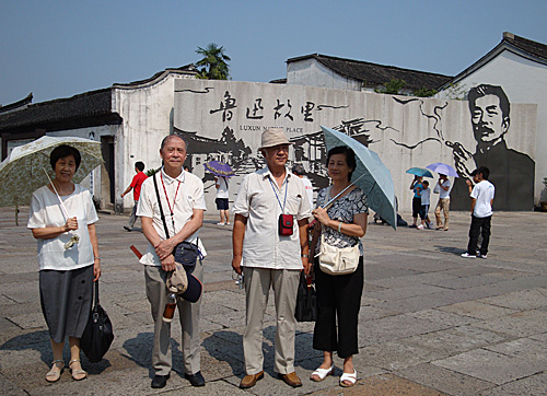 8月26日,老同志來到紹興,先后參觀了沈園、魯迅故居、魯迅紀念館、蘭亭序以及紹興古城。漫步悠悠古纖道上,綠水晶瑩,石橋飛架,輕舟穿梭,典型的江南水鄉(xiāng)景色令老同志留連忘返。近80歲的老同志林木參觀紹興后,對紹興整個城市干凈整潔,古城建筑保留完好,典型的江南水鄉(xiāng)景色贊嘆的說,“紹興真值得一游”。