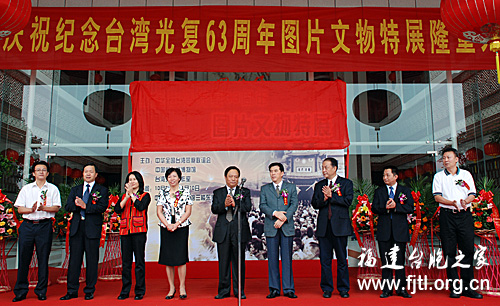 梁國揚(yáng)會(huì)長(zhǎng)在開幕式上致辭中指出:臺(tái)灣擺脫日本殖民統(tǒng)治,重新回歸祖國已經(jīng)63年,兩岸同屬一個(gè)中國早就是不容置疑的客觀事實(shí)。今年5月以來,兩岸關(guān)系迎來重要轉(zhuǎn)機(jī),出現(xiàn)難得的發(fā)展機(jī)遇,兩岸交流合作站在新的歷史起點(diǎn)上。開展兩岸同胞大交流,促進(jìn)兩岸關(guān)系大發(fā)展,符合兩岸同胞共同愿望,順應(yīng)歷史發(fā)展潮流。 他說,這次參與舉辦紀(jì)念臺(tái)灣光復(fù)63周年圖片文物特展,一是為了弘揚(yáng)臺(tái)灣同胞愛國主義的光榮傳統(tǒng);二是為了促進(jìn)兩岸交流。本次特展以大量的歷史圖片和文物為載體,從最直觀的角度生動(dòng)描繪了臺(tái)灣在不同歷史時(shí)期的風(fēng)土人情,傾情展現(xiàn)了閩臺(tái)血脈相連、骨肉相親的歷史淵源。用這些歷史圖片資料見證臺(tái)灣自古以來就是中國領(lǐng)土的事實(shí)。